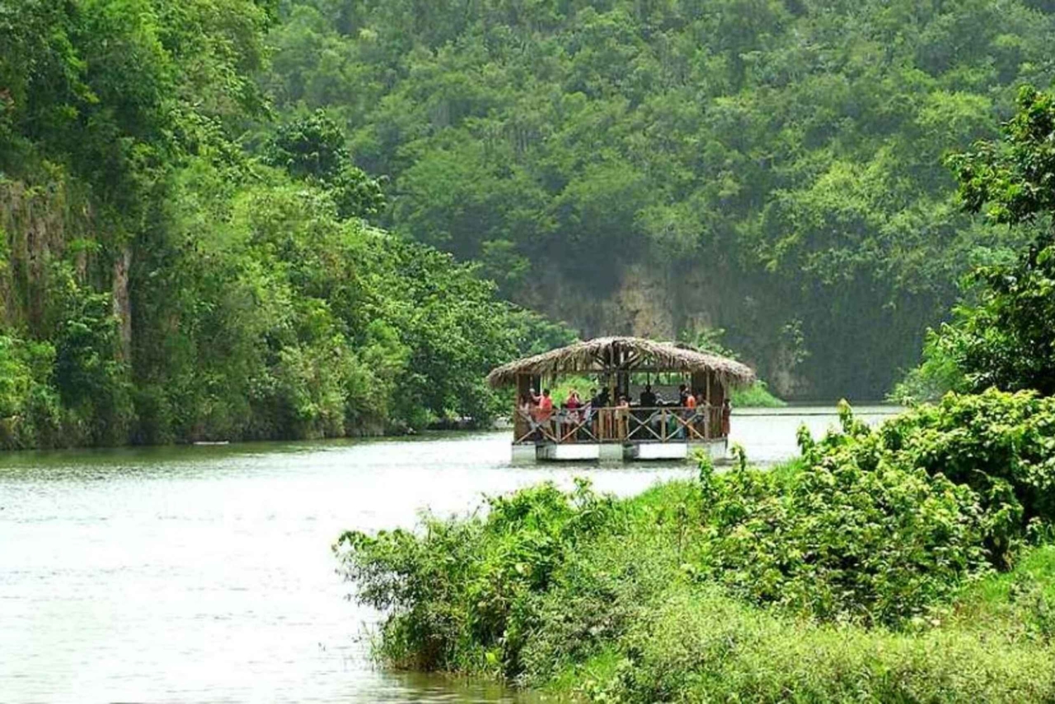 As night falls, enjoy a 100% Dominican dinner on the river, served buffet-style: grilled chicken, shrimp, rice, cassava, fried plantains, and more. All this while gently sailing under the stars — a romantic and unforgettable moment.