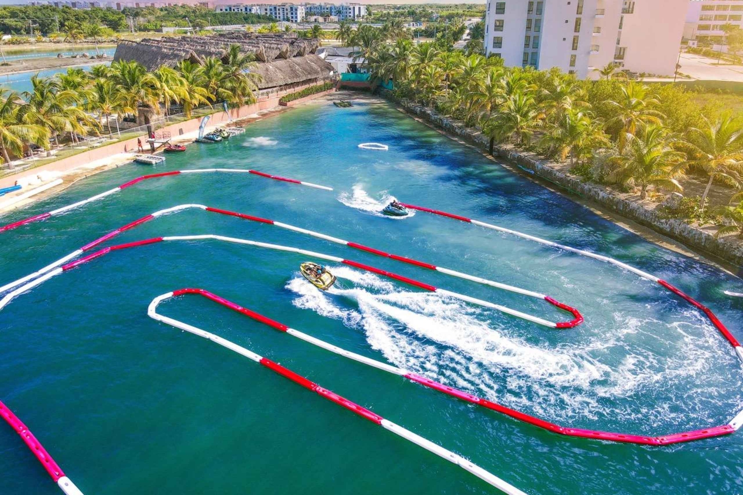 Customize your adventure with Aqua Experience packages! Choose 1-3 main activities like Jet Skiing, Aqua Karts, or Buggy, plus extras like Donut Ride, Zipline, Inflatable Course & pool club access