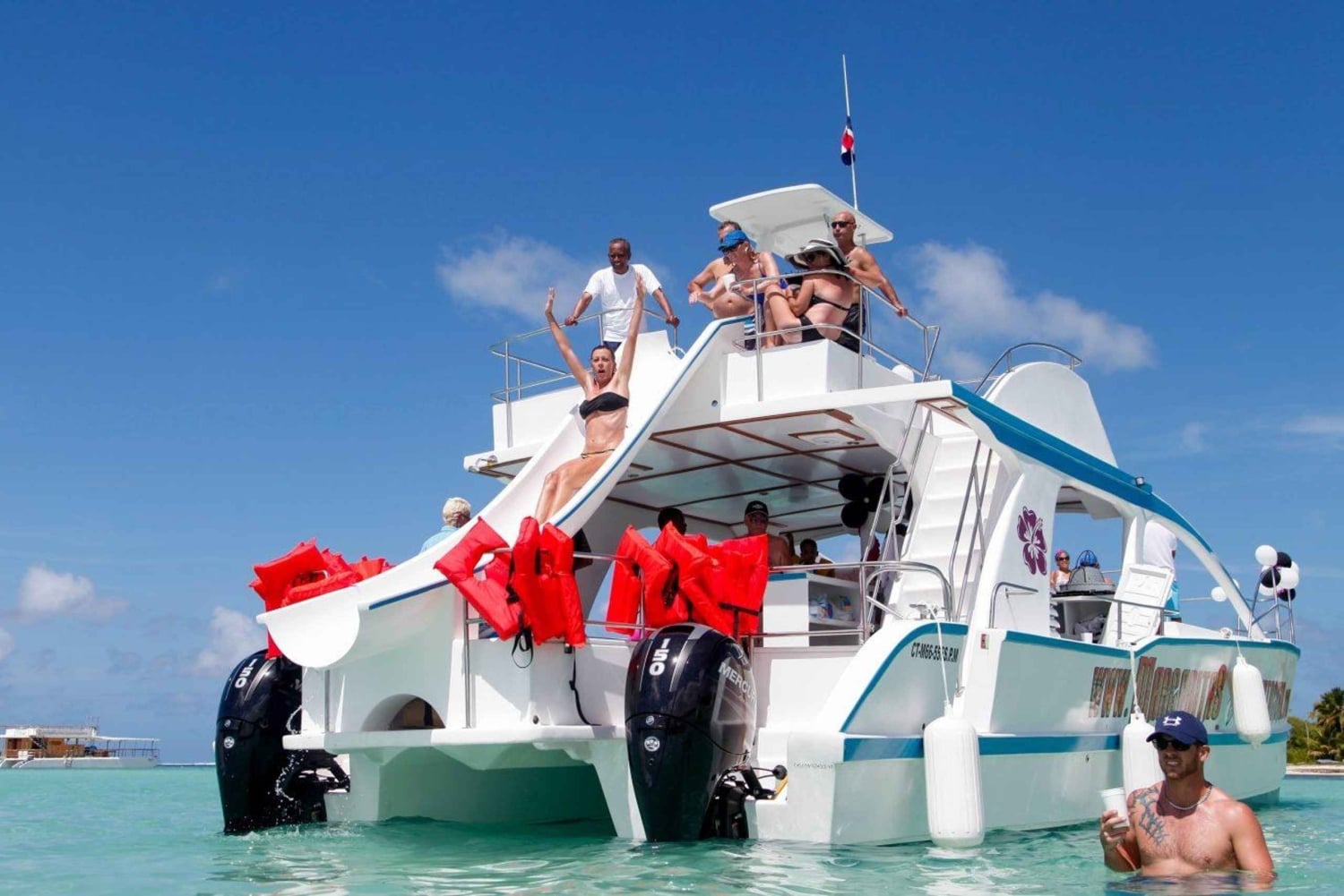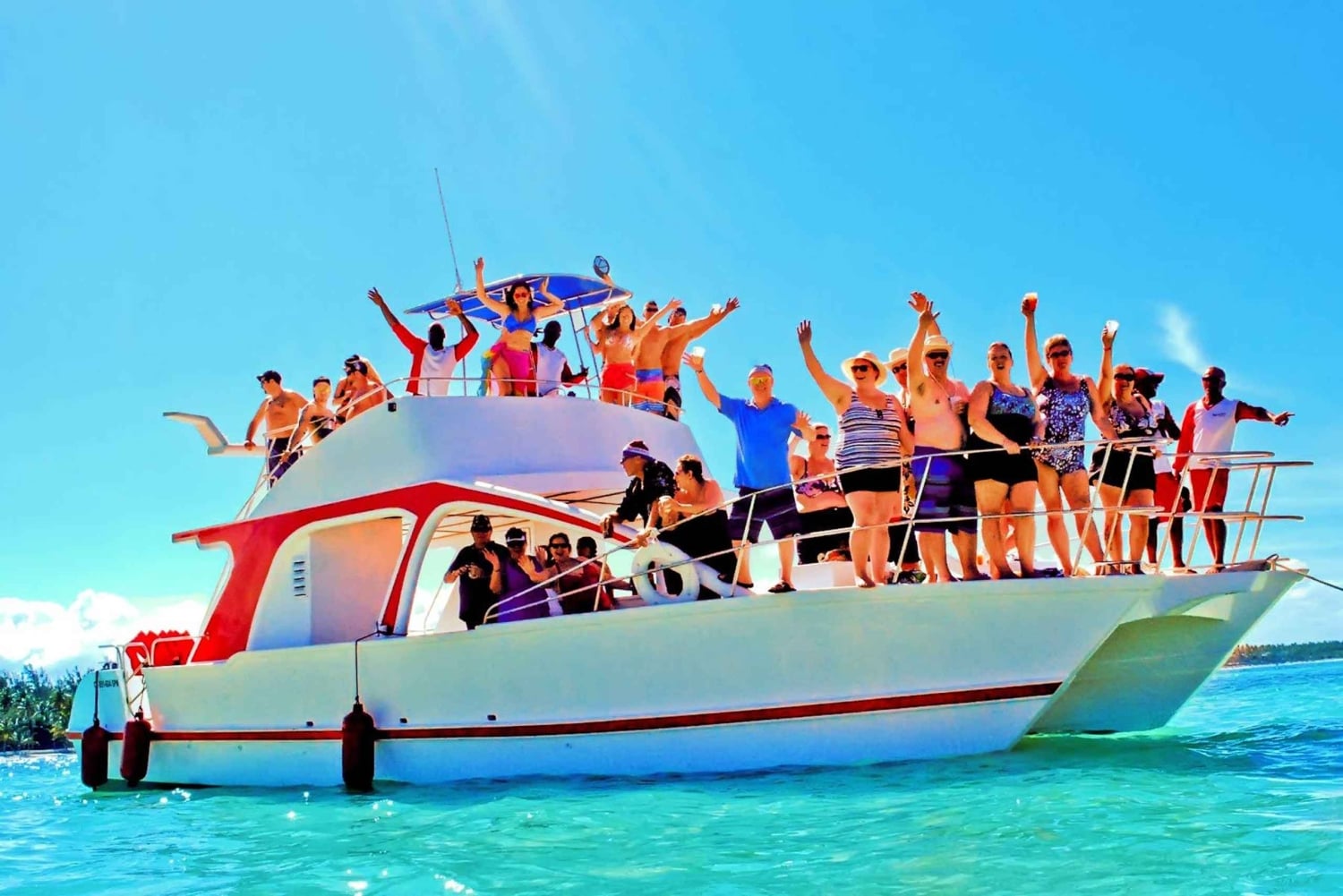 Boottocht met feest Open bar met lokale drankjes (rum) Muziek en dansen aan boord Snorkelstop met uitrusting inbegrepen Stop bij een natuurlijk zwembad of zandbank Snacks en vers fruit Ophalen en terugbrengen bij geselecteerde hotelsImportant Information
