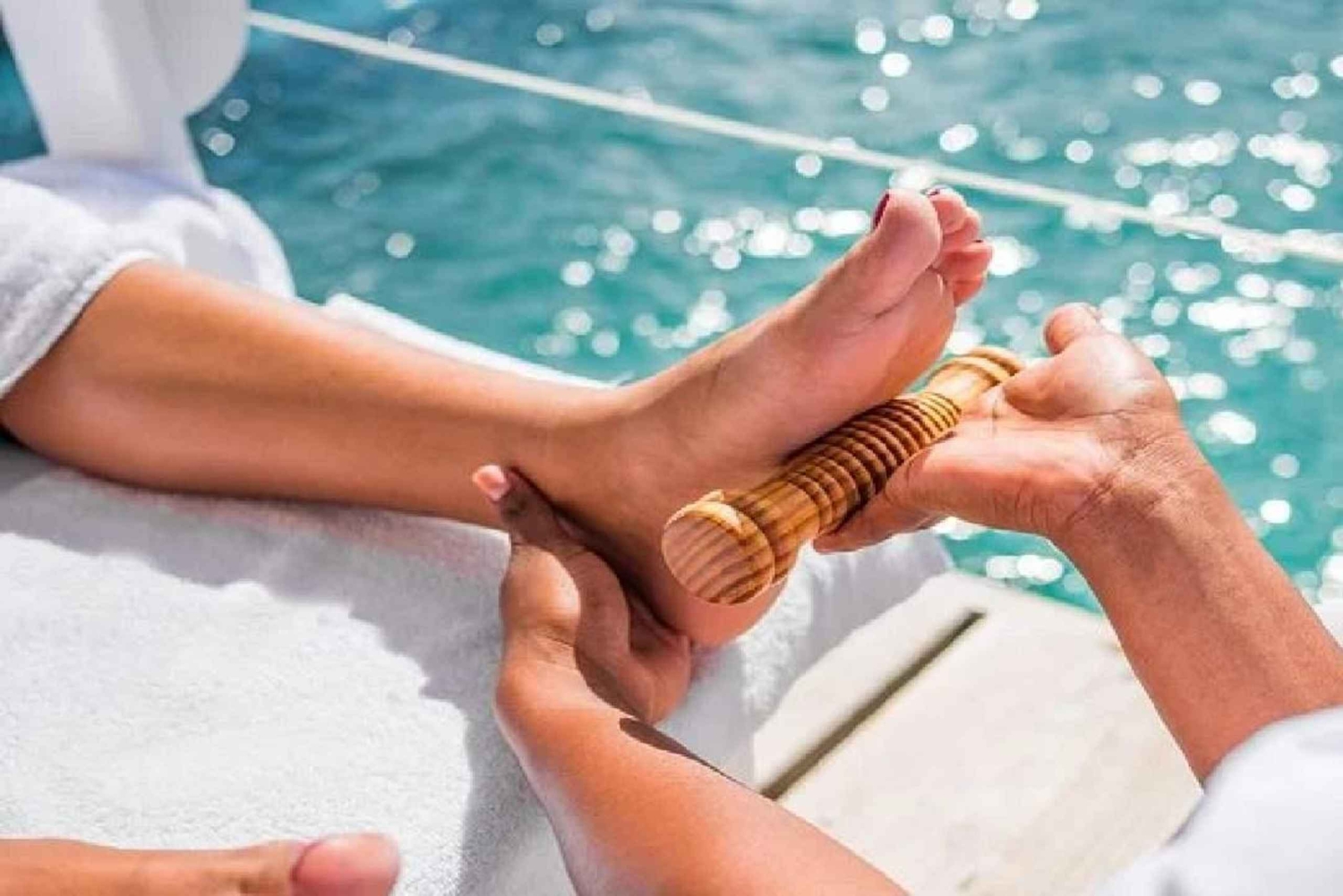 Hvis du er ute etter avslapning, kan du slappe av i flytende hengekøyer, sole deg på matter eller nyte en tibetansk hode-, nakke- og skuldermassasje. Andre velværealternativer inkluderer kroppsmaderoterapi, refleksologi med akupressur og fotbehandlinger som er utformet for å lade opp energien din.