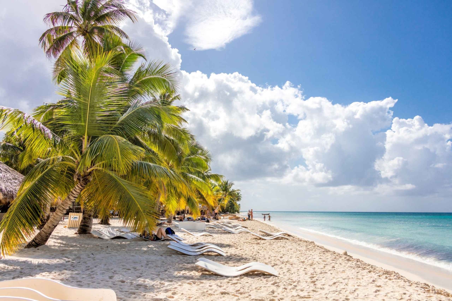 Partirás de Bayahibe em direção aos mares ensolarados que rodeiam o Parque Nacional de Cotubanama. Ao longo do caminho, vais parar para nadar ou fazer snorkeling entre cardumes de peixes tropicais numa piscina pouco profunda formada por bancos de areia no meio do mar. Quando chegares a Saona, terás muito tempo para apreciar as vistas deslumbrantes e tirar muitas fotografias. Talvez queiras dar um passeio descalço ao longo dos 1 km de praia privada, ou talvez prefiras simplesmente relaxar com um cocktail. Apesar de Saona ser uma das zonas mais visitadas do país, há uma zona de praia exclusiva reservada só para ti. Outro ponto alto é o almoço de surf e relva num restaurante à beira-mar. E não te preocupes em ficar com sede - todas as bebidas estão incluídas.